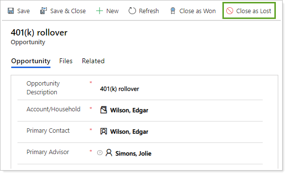 As a best practice, we generally recommend designating someone in your firm who will determine when an opportunity is lost or won. This will ensure consistency in use of Tamarac CRM and help define your internal processes.
