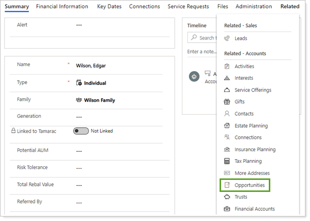 When you bring on a new client, you may only sign part of their assets or you may hear about outside assets from clients that you have worked with for a while. Opportunities allow you to track outside assets that you're working on bringing under management for current clients. Additionally, you can track metrics on opportunities that you have won or lost and see where any open opportunities are in the business development cycle by using Tamarac's business development reports.