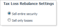 SELL ONLY LOSSES: When you select this option, Advisor Rebalancing will sell only the lots that have incurred losses for the security which are beyond the loss threshold you've specified, and will not sell the lots that do not meet the loss criteria or that have gains.