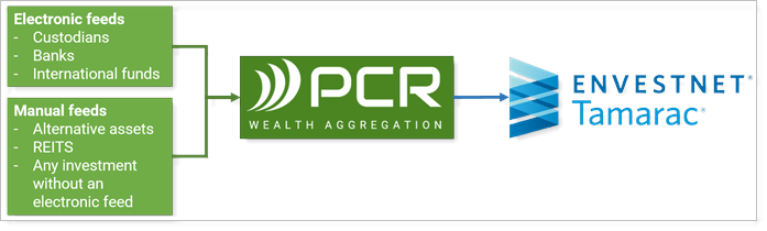 Tamarac integrates with Private Client Resources (PCR) to provide you access to over 3,000 alternative investment data feeds, as well as any unique feeds your firm may need built. With this seamless integration, PCR aggregates the data from custodians, banks, alternative investments, and more. It then sends the feed to Tamarac, giving you the ability to analyze any type of alternative investment data within Tamarac exactly as you would data from major custodians.