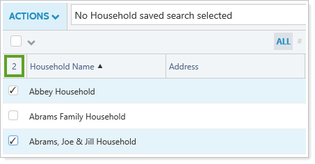 Review the number in the heading row of the table to verify how many Households are selected.