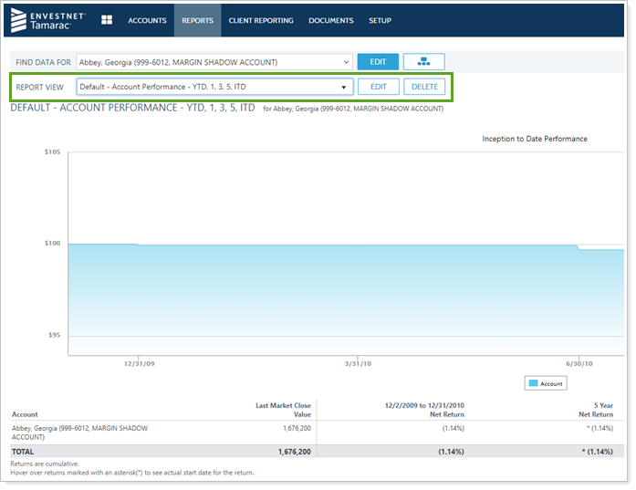 Interval Performance Report | Default - Interval Performance - ITD | This report view displays daily performance intervals at the account level from the inception to date. |